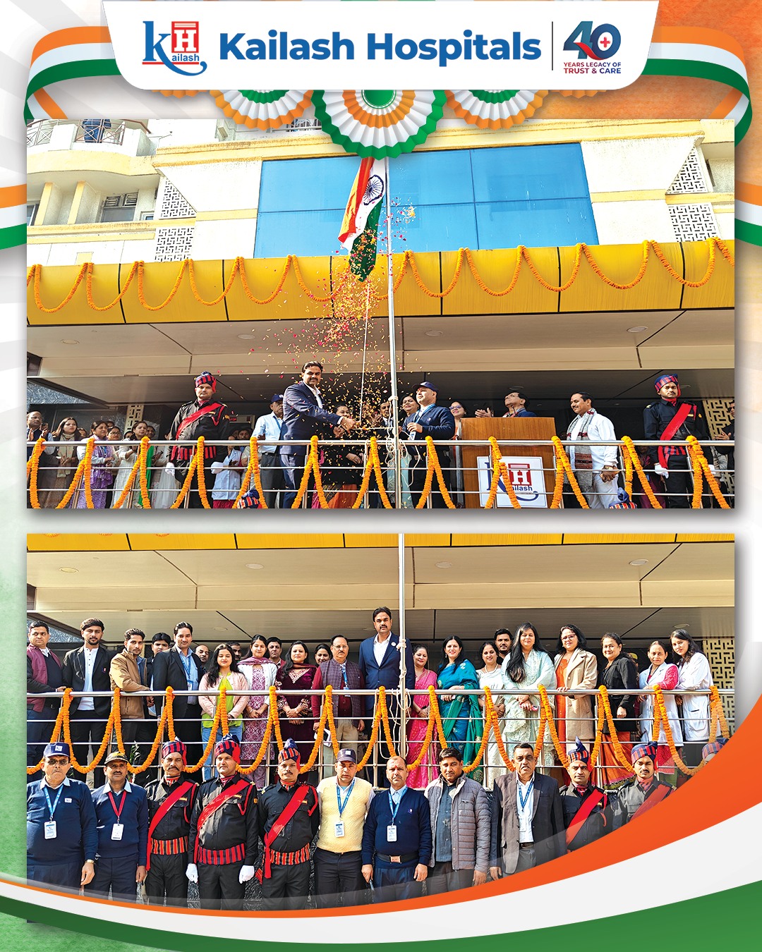 Celebrating the Spirit of India! 🚩 Today, as the Tricolor soars high, we at Kailash Hospitals honor the values of unity, integrity, and progress. We take pride in our 40-year legacy of healing and our continued mission to provide world-class healthcare to every citizen. Get glimpses of today's #RepublicDay celebration. Jai Hind ! 🇮🇳